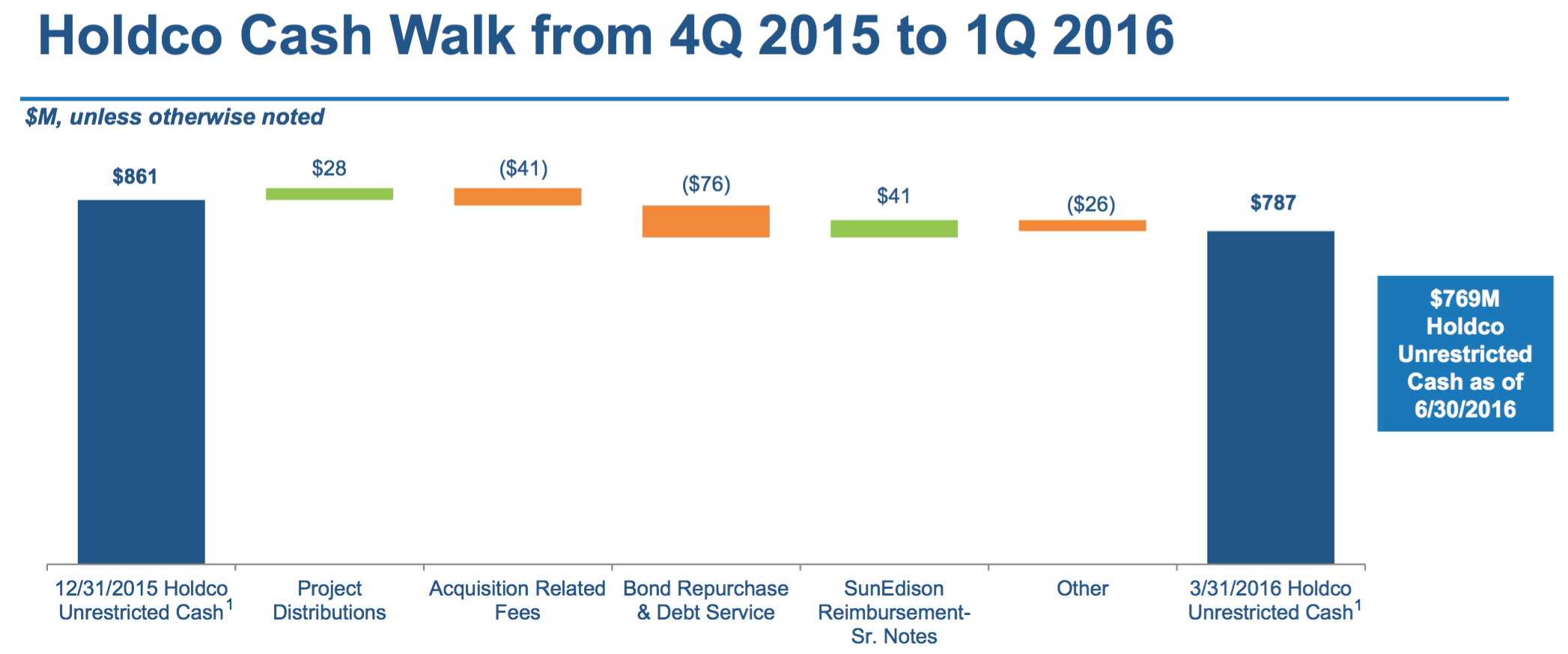 One of the first things TerraForm Global did was lay out its operations for the past six months. Since there has been a dearth of financial information from the company since Q3 2015, it's been a while since we've been updated on its revenue and cash flow. The biggest numbers of note were projections of cash available for distribution (CAFD) of $56 million to $64 million in the second half of 2015. First-quarter 2016 CAFD was $42 million-$48 million.