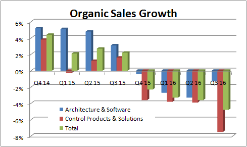 However, the market has been in forgiving mode. In fact, Rockwell has outperformed industrial peers such as General Electric Company (GE 2.84%) and Emerson Electric (EMR +0.55%). General Electric Company is a useful comparison because CEO Jeff Immelt recently guided investors toward the company's hitting the bottom end of its full-year organic growth guidance for 2% to 4%. In a similar outcome, Rockwell's organic sales are now expected to be near the bottom end of its original guidance -- the difference is that Rockwell's stock has massively outperformed General Electric's in 2016.