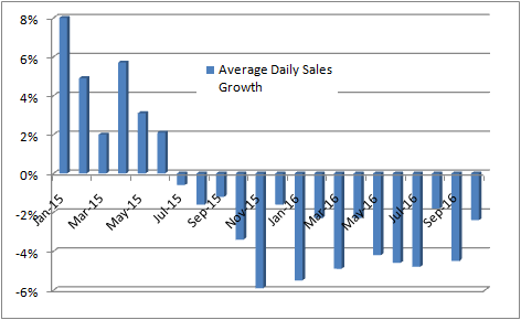 Moreover, management's outlook for the first quarter of 2017 is based on the assumption that average daily sales will decline 3.5% compared to the same period in 2016: