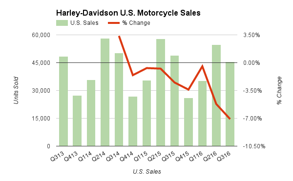 There was rightly a lot of excitement around the introduction of the new power house. Harley noted that although U.S. motorcycle sales fell over 7% in the the third quarter, once it introduced the new Milwaukee-Eight in August on its new 2017 model touring bikes, segment sales climbed higher in September.