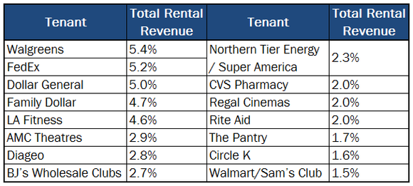 As you can see, the businesses that rent from it are household names that aren't going anywhere anytime soon.