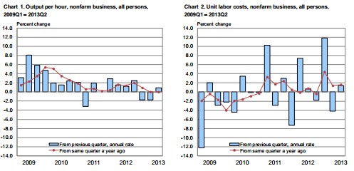Comparing this quarter to Q2 2012, overall productivity remains unchanged, while unit labor costs are up 1.6%.