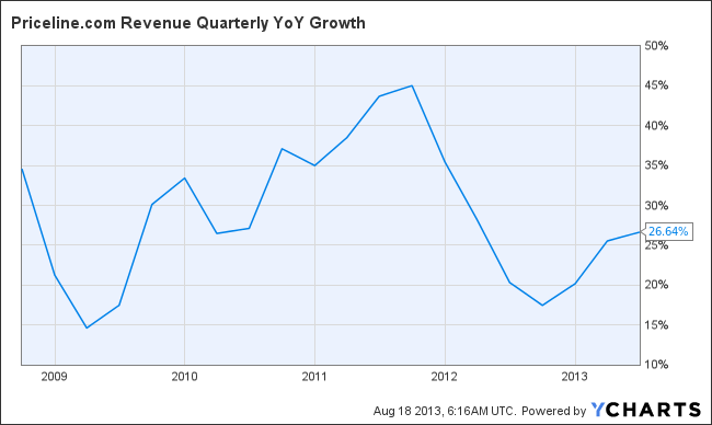 Judging from the latest earnings call, there are plenty of reasons that justify Priceline's current stock price. Investors are valuing Priceline as a growth stock because even after 14 years in the same business, it can increase its total gross travel bookings by approximately 27%-34%.These are amazing growth figures for a commercial site that has been online since 1998!