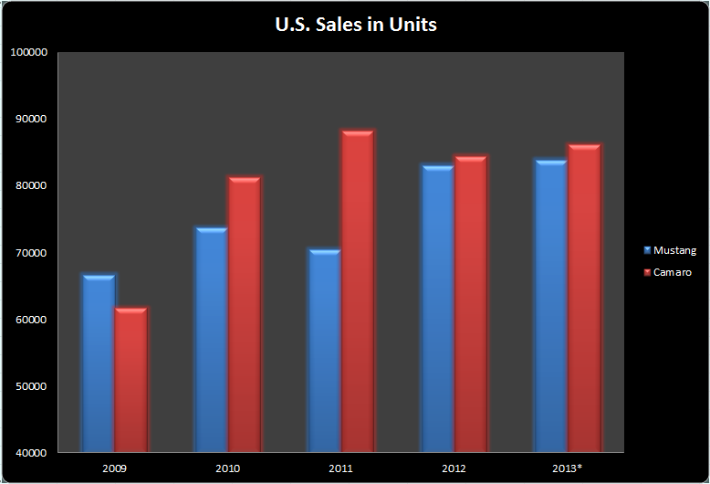 Ford's (F +0.38%) Mustang and General Motors' (GM +2.11%) Camaro have been engaged in an epic muscle-car battle throughout much of the past five decades. The line has been drawn in the sand, and you're either a Ford guy or Chevy guy, no gray area. The rivalry is as strong as the MLB's Yankees vs. Red Sox or the NFL's Cowboys vs. Redskins. The Mustang came to market first in 1964 and enjoyed much success over its rival Camaro, which came out a few years later, and it continued to dominate the sales title for 31 of the 42 years in which both iconic muscle cars were both produced.