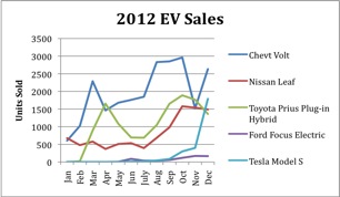 Electric vehicles have been slowly gaining in popularity -- whether it's a PHEV, a BEV, or any other variation. But sales for EVs are still low and make up only a limited market share. Consequently, any new EV release will probably affect other EV sales. Here's an example: At the beginning of 2012, there were really only three comparable EVs available -- General Motors' (GM 0.52%) Chevy Volt, Toyota's (TM +0.01%) Prius Plug-In Hybrid, and Nissan's (NSANY 1.33%) Leaf.