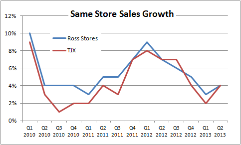 Essentially, both companies are executing well in their core U.S. off-price clothing markets. While other retailers are suffering from the ongoing cautiousness of the consumer, the off-price concept seems tailor-made for consumers seeking opportunities to avoid paying full price.