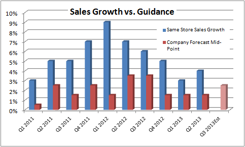 However, the one area where Ross under-performed TJX was in its home-goods sales, which only rose inline with its total sales growth. Similar to its rival, Ross Stores continues to beat its own guidance.