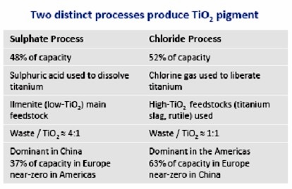 Need evidence? Cheap TiO2 products from China have flooded the U.S. markets in recent months, and China is almost a 100% sulphate-based TiO2 technology nation. Ironically, this increased invasion of sulphate-based TiO2 may have also driven Huntsman's decision to acquire Rockwood's TiO2 business, but that can also have two implications.