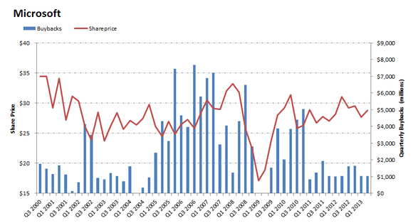 I checked out Microsoft's history timing share buybacks. Have a look: