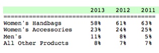 For the 12 months ended June 2013, Coach's North American revenue increased only 2.8% on 0.3% comps. Japan's net sales were down 9% in dollars and flat year-over year in constant currency. Japan had a net increase of 11 retail stores and 9% growth in square footage, and yet revenue was flat, indicating Japan's same store sales are in negative territory and new stores are seriously under-performing. At 15% of total sales, Coach can't afford to let the business slide much further.