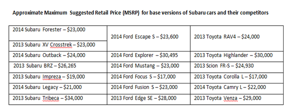 Subaru has backed this up with a competitive pricing strategy. It had once made the mistake of putting premium price tags on its vehicles as fair value for its AWD technology. The result was a slide in sales in the 1990s and early 2000s, which almost threatened to put it out of business. But, this taught the company a lesson that it would not forget in a hurry. The launch of the 2009 Forester indicated a clear shift in strategy when its base price was reduced by $1,200. Currently, Subaru's cars are all competitively priced.