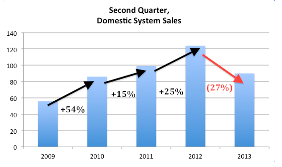 There was lots of speculation on why system sales slowed so much in the United States, ranging from the medical community questioning the efficacy of robotic surgery, to uncertainty surrounding the effects of the Patient Protection and Affordable Care Act.
