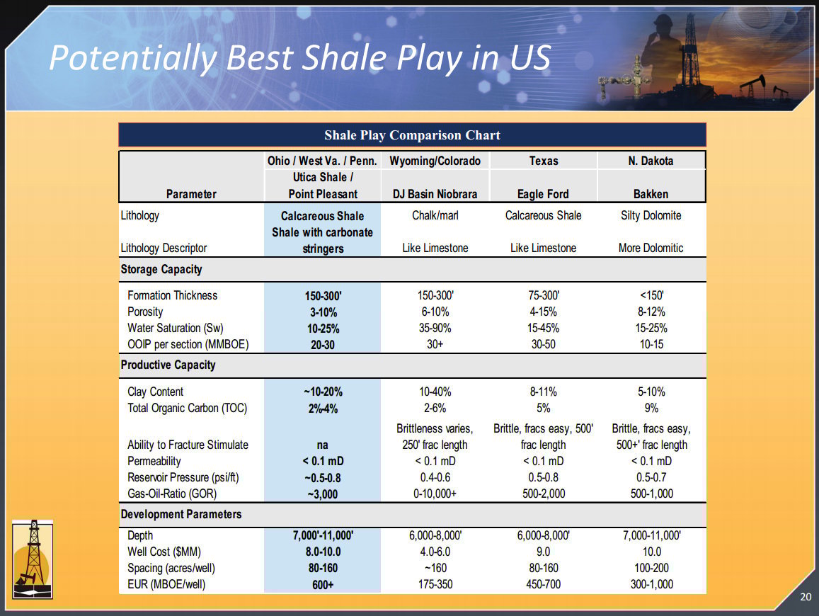 It turns out the Utica is just saturated with a vast amount of recoverable natural gas and natural gas liquids. While it doesn't contain the high levels of oil of the Bakken or Eagle Ford, the amount of gas that can be extracted on a barrel of oil equivalent, or BOE, basis per well rivals or exceeds these two oil rich plays. This is one of the reasons why McClendon chose to return to the play with his new venture.