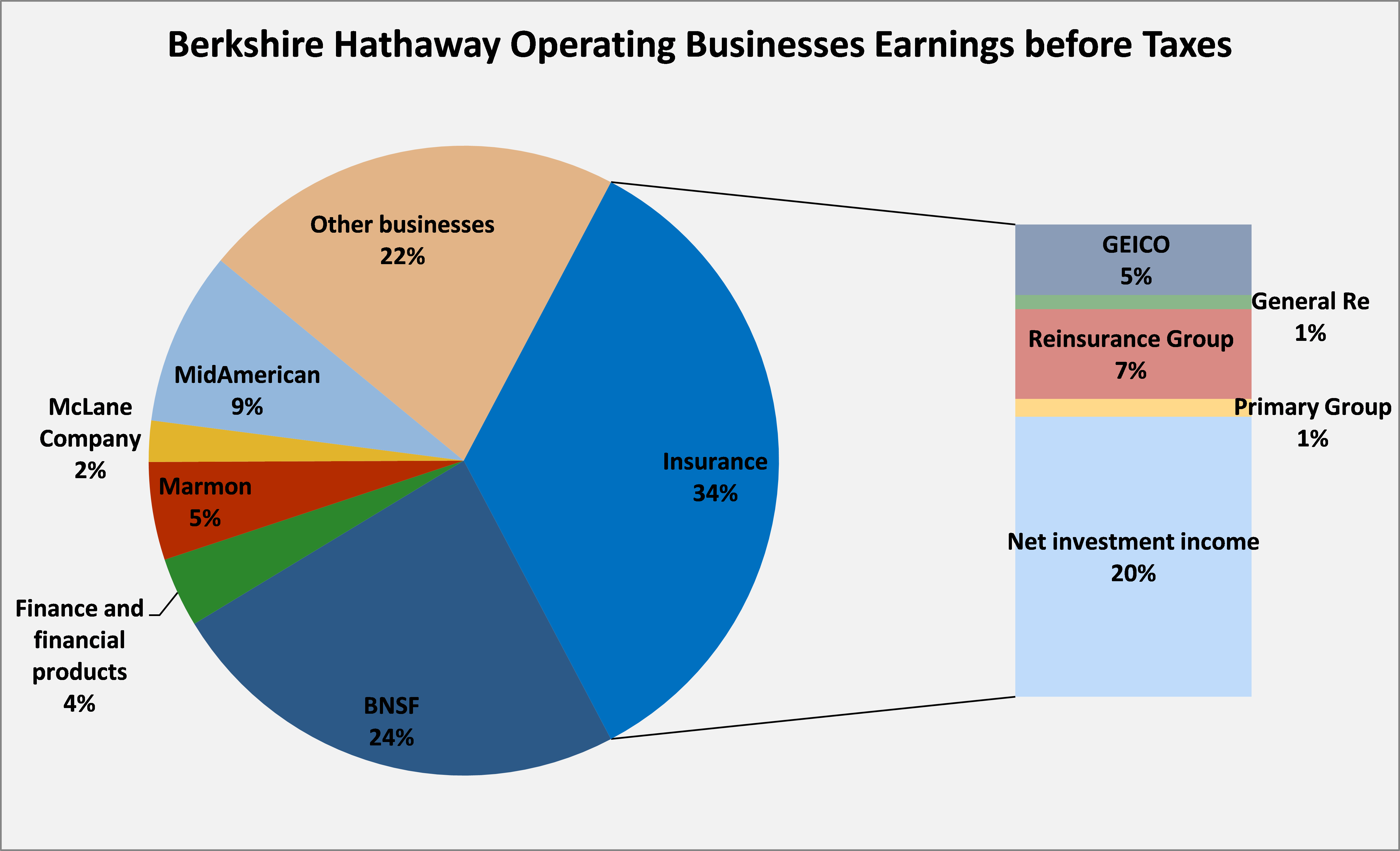 Shown a little differently, of Berkshire Hathaway's $14.5 billion in earnings that are available to shareholders, the company has a dramatic number of different business it operates in: