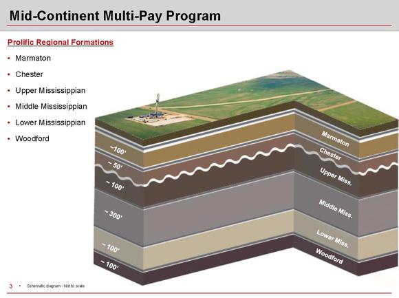 As the following schematic shows, SandRidge has the potential to target several additional oil and gas producing zones in addition to its core Mississippian development.