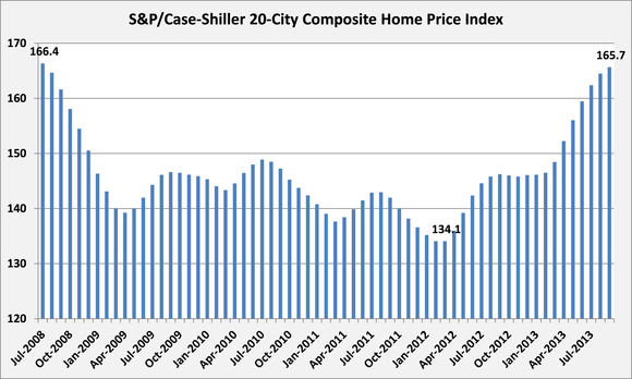 "Housing continues to emerge from the financial crisis: the proportion of homes in foreclosure is declining and consumers' balance sheets are strengthening," said the chairman of the Index Committee at S&P Dow Jones Indices, David Blitzer. "The longer run question is whether household formation continues to recover and if home ownership will return to the peak levels seen in 2004."