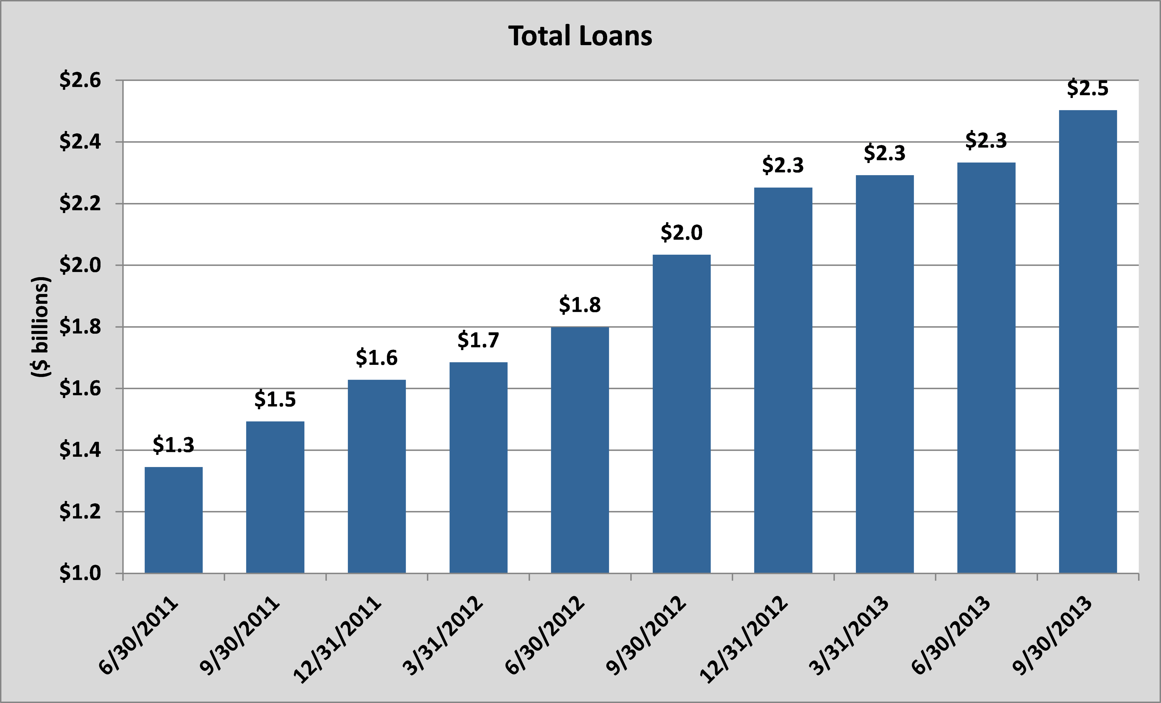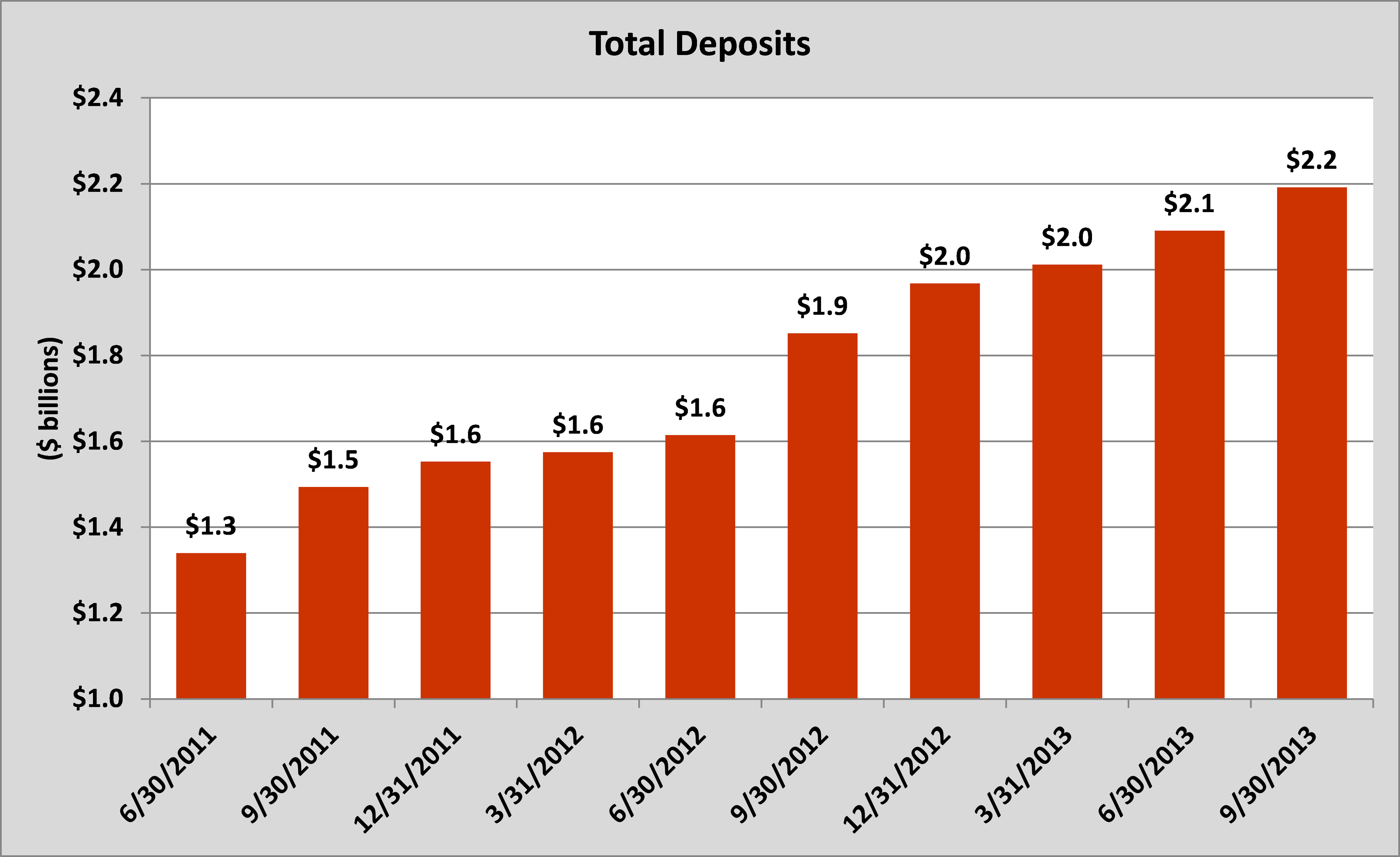 Of course, at the very core of every bank is its deposit base, and BofI is no exception. And the company has delivered solid growth, with its deposits up 18% since September 2012. All told, in 2013, its deposits have risen by 11% and now stand at $2.2 billion: