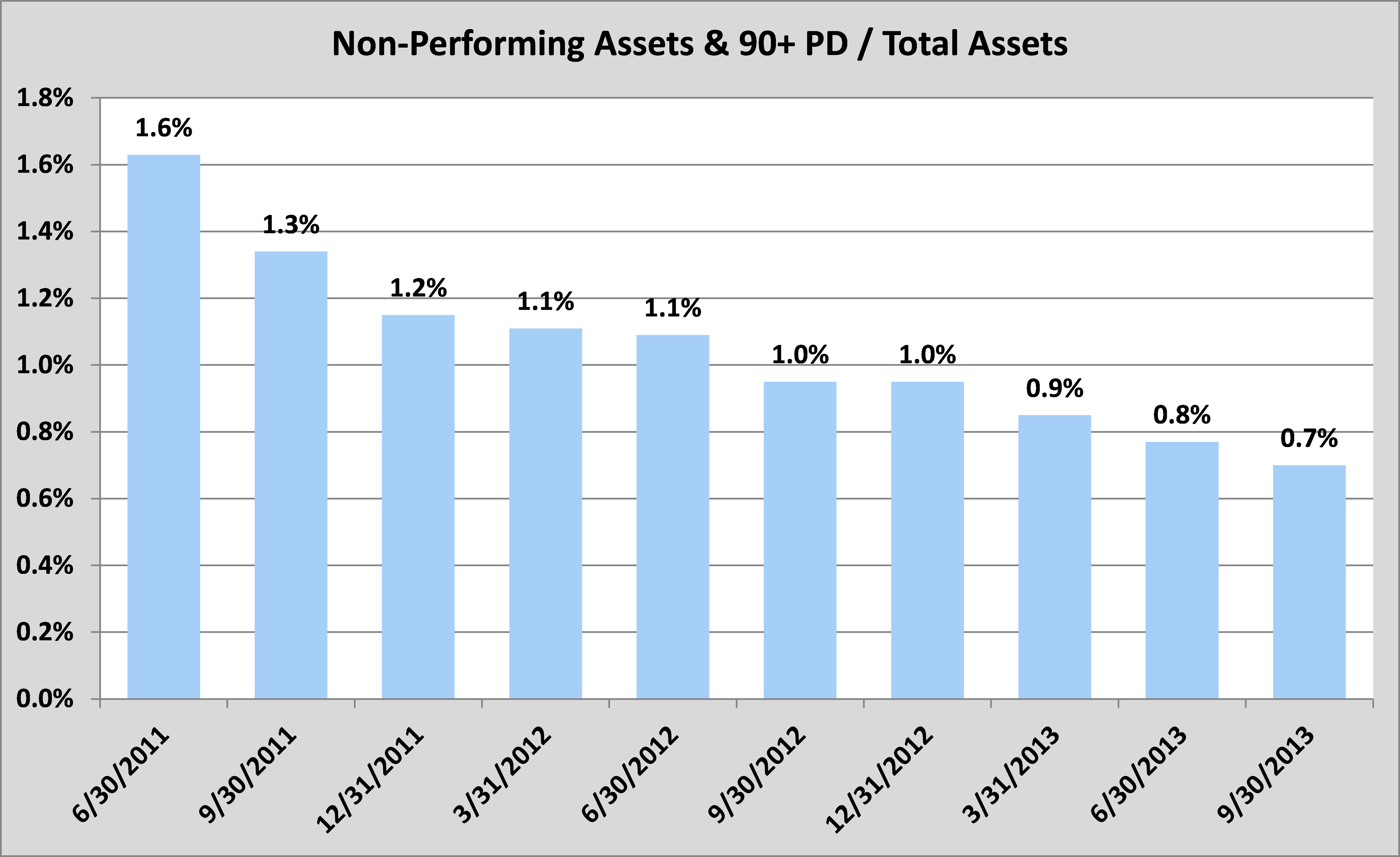Certainly it is encouraging to see the percentage of its assets that are not performing relative to its total assets fall precipitously. When a bank adds loans, increases margins, and reduces the risk on its balance sheet, it is translated straight to the bottom-line returns it can deliver to investors.