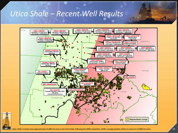 But what's really intriguing is the company's internal estimate of contingent reserves. In part because of its vast untapped Utica Shale potential, Magnum Hunter sees 728.9 million BOE in contingent resources. Add it all up and the company believes the net asset value of its shares is somewhere between $8.83 and $14.37 per share.