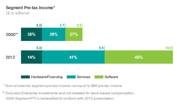 Current run rates show 45% of IBM's segment profit coming from software sales. That's up from 43.6% a year ago, but IBM needs to accelerate its software-focused strategy shift in order to meet this goal.