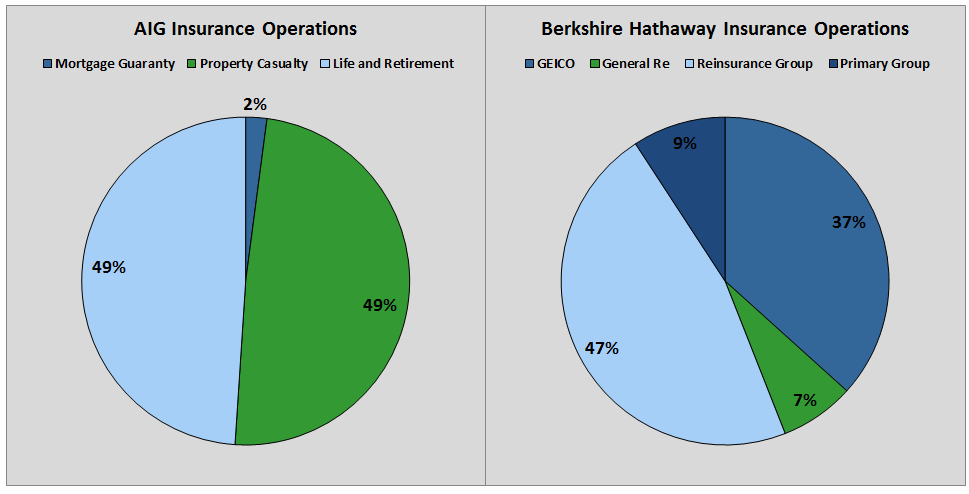 Consider that when you compare AIG to industry stalwart Berkshire Hathaway (NYSE: BRK-A) (NYSE: BRK-B), looking only at the income of insurance operations through the first nine months of 2013, each are extremely well balanced when it comes to their respective segments: