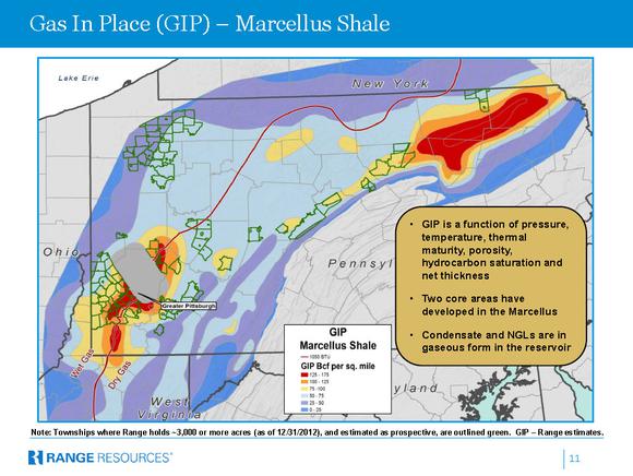 Other producers aren't so lucky. The following map shows the areas of the Marcellus that hold the most gas in place.