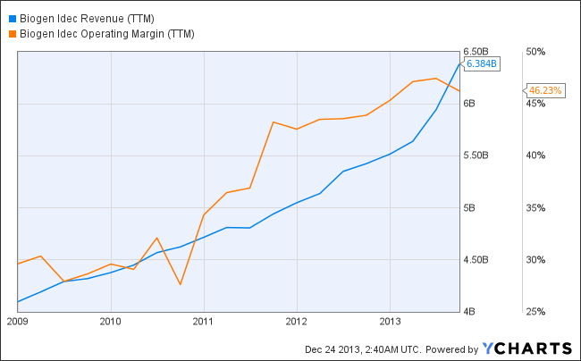 At just 35 years old, Biogen Idec (BIIB +1.01%) claims it's the world's oldest independent biotechnology firm. During the nine months ended September 30, its multiple sclerosis (MS) therapies Avonex, Tysabri, and Tecfidera comprised $3.94 billion, or about 80%, of the company's total revenue.