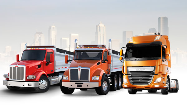 The New Peterbilt Model 567, Kenworth T880, and DAF CF. Image Source: Company website