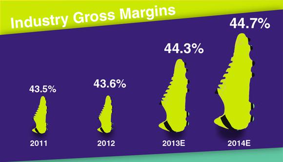 A study by Bidness Etc noted that basketball footwear is not only the fastest growing category within footwear, it also happens to have high margins, and those margins will only improve in 2014.