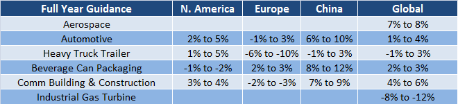 In conclusion, it was a mixed outlook with the main disappointment coming from the industrial gas turbine outlook. However, Europe looks set to improve, and North American industrial growth prospects look solid. China is subject to uncertainty this year, but Alcoa continues to give a positive reading on the country. Aerospace and automotive demand remains strong, and prospects look good for U.S. commercial construction.