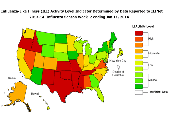 Although we're early in the game, so to speak, it appears as if 2013-2014's flu season is going to again be active, with the weekly Influenza Surveillance Report from the CDC pointing to significantly higher influenza-like illness outpatient visits, or ILIs, through the second week of 2014.
