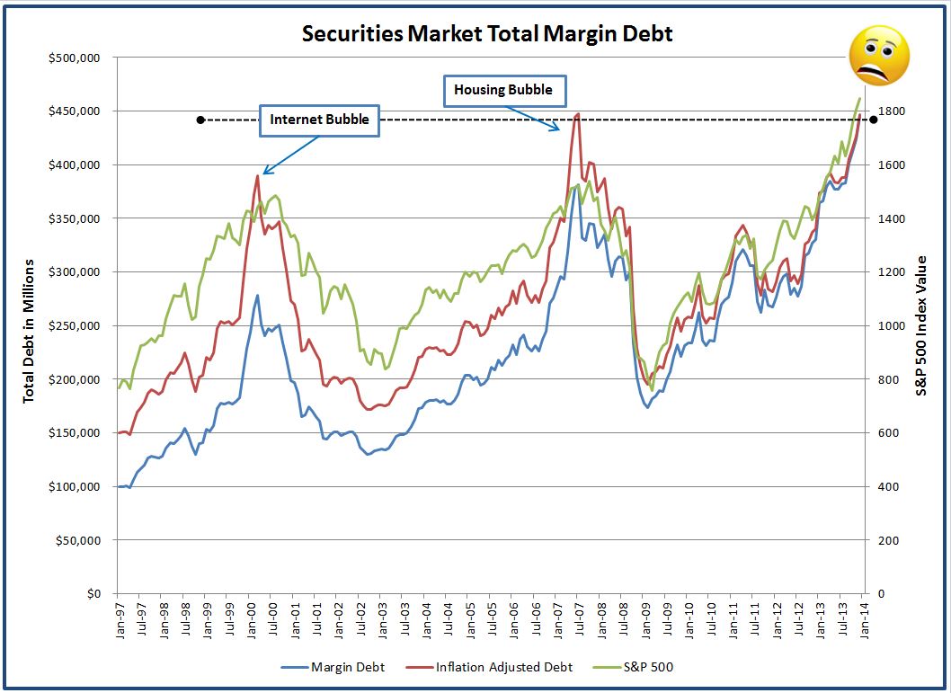 The New York Stock Exchange recently updated its stock market margin-debt data, showing that Main Street and Wall Street are still continuing to dump billions in borrowed dollars into the stock market.