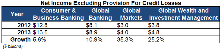 After excluding provision for credit losses, which can at times cloud the numbers (often for the better), each part of the business saw its income rise year over year: