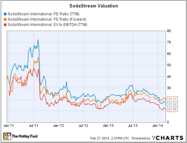 Falling profit margins and increased competitive pressure mean that SodaStream is becoming a more risky investment lately. However, this uncertainty seems to be already reflected in the stock price since SodaStream is trading at attractive valuation ratios from a historical perspective.