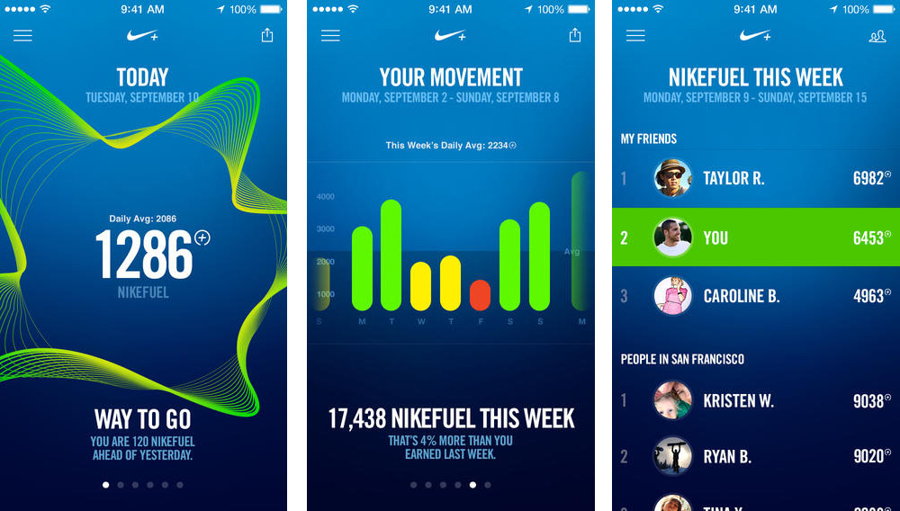 For example, a key aspect of Nike's strategy with the FuelBand is the "gamification" of fitness via social connections. Users can compete against their friends via Nike's social network, share their results on Facebook, and win video game-like "achievements" for hitting certain fitness milestones. Other companies, like Jawbone and Fitbit, have emulated Nike's social fitness recipe for success.