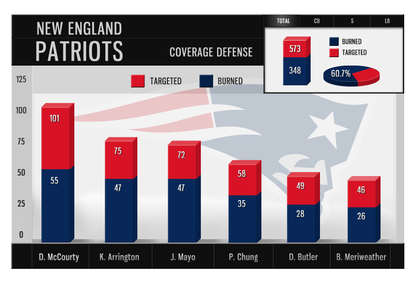 A sample graphic detailing "burned defenders" on the New England Patriots. STATS LLC, X-Info.