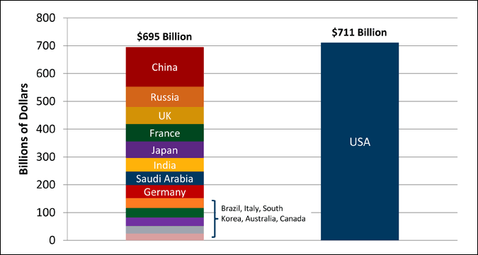 But what about the other part of the theory? That the "next 13 nations combined" supposedly spend only $695 billion?