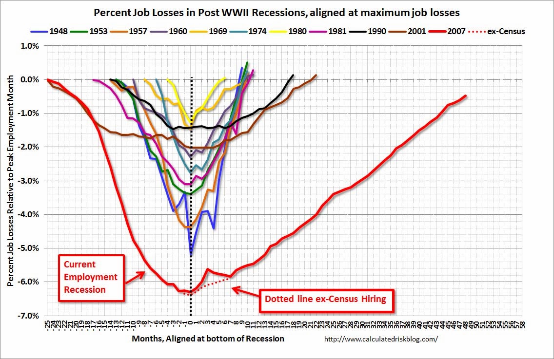 And from the blog Calculated Risk, what was once called "the scariest jobs chart in the world" is getting much less scary:
