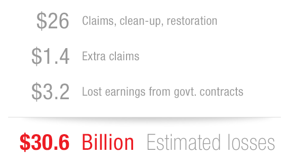 Add that to the $26 billion BP Plc has already paid in claims, clean-up, and restoration, plus an estimated $1.4 billion in extra claim costs following a federal appeals rejection last week that keeps the company on the hook...and you're left with $30.6 billion.