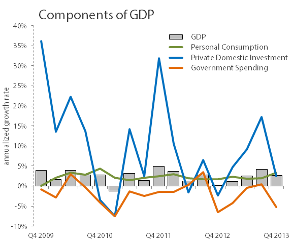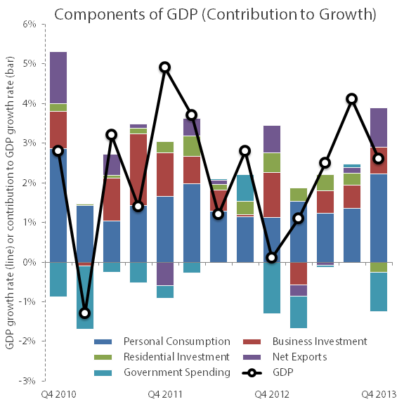Finally, let's take a look at how all of these major components actually contributed to GDP this quarter (and in prior quarters):