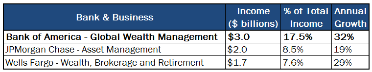 Bank of America truly is a diverse bank and receives income not only from its consumer and corporate lending and banking services but also its wealth management and investing unit for individuals. In 2013, its, global wealth and investment management (GWIM) business delivered $3 billion in income, representing nearly 20% of the total for Bank of America.