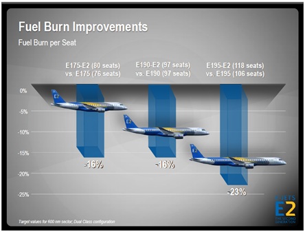 The E2 jets would feature Pratt & Whitney powered engines that claim to reduce fuel consumption significantly. These are very attractive selling points considering 32% of an aircraft's operating charges are attributable to fuel costs. Embraer estimates that the E2 jet would reduce flying cost by 20% compared with bigger 150-plus-seat planes. The bigger aircraft consumes more fuel to take off and operate as they are much heavier than a small-sized Embraer jet.