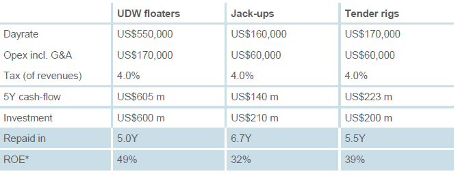 Ensco's competitor Seadrill recent announced that it had secured contracts for four of its jack-up rigs, all of which received dayrates in excess of $160,000 and some of which exceeded $200,000. Unfortunately, dayrates vary significantly by region and since none of these contracts were for operations in the Middle East we do not have a direct point of comparison. However, based on the dayrates for other contract announcements, $160,000 seems to be a conservative estimate.
