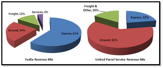 Fiscal year 2013. Chart made by author. Source: FedEx, United Parcel Service