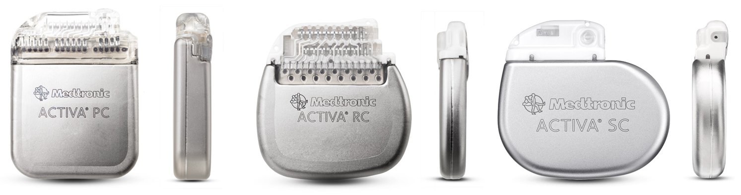 Three models of the Activa -- the PC, RC, and SC. Source: Medtronic.