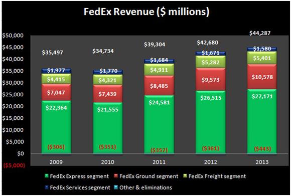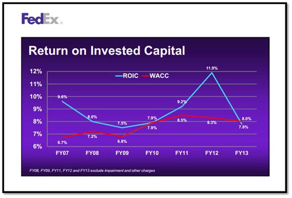 Express being the largest business arm, FedEx would put most of its capital funds in it. Of late, however, returns have been low as margins are shrinking. As such, the company has started spending more on assets in the Ground segment where returns are higher. At the end of fiscal 2013, the Ground segment had an ROIC as high as 18%.