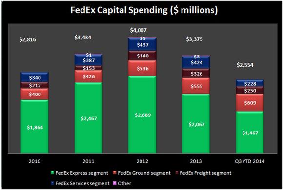 In the year-end conference call, CFO Alan Graf said the company will step up spending in the Ground segment so that it "can be ready for what traffics we are expecting in FY16, and I think it's a good thing. These are high ROIC investments and we are happy to put it in." Management has stayed true to its words as evident from the company's capital spending trend in the first three quarters of fiscal 2014.
