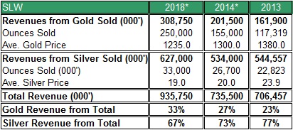 In the past several years, the company has increased its exposure to gold, mainly with the purchase of streaming rights from Vale's Salobo and Sudbury mines back at the beginning of 2013. This has led to a shift in which gold took a more prominent role in the company's total operations.