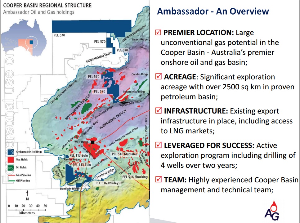 This past week, we learned that Magnum Hunter is in the middle of a bidding war for Australian oil and gas producer Ambassador Oil & Gas with another Australian exploration and production company. This particular company is in Magnum Hunter's sights because it shares an exploration license on a very large tract of land in the Cooper Basin with New Standard Energy, a company in which Magnum Hunter holds a 17% equity stake.