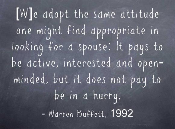 Not your folksy Buffett-esque quote, but, hey, it gets the point across: Take your time. Develop a system. We're in this for the long haul.